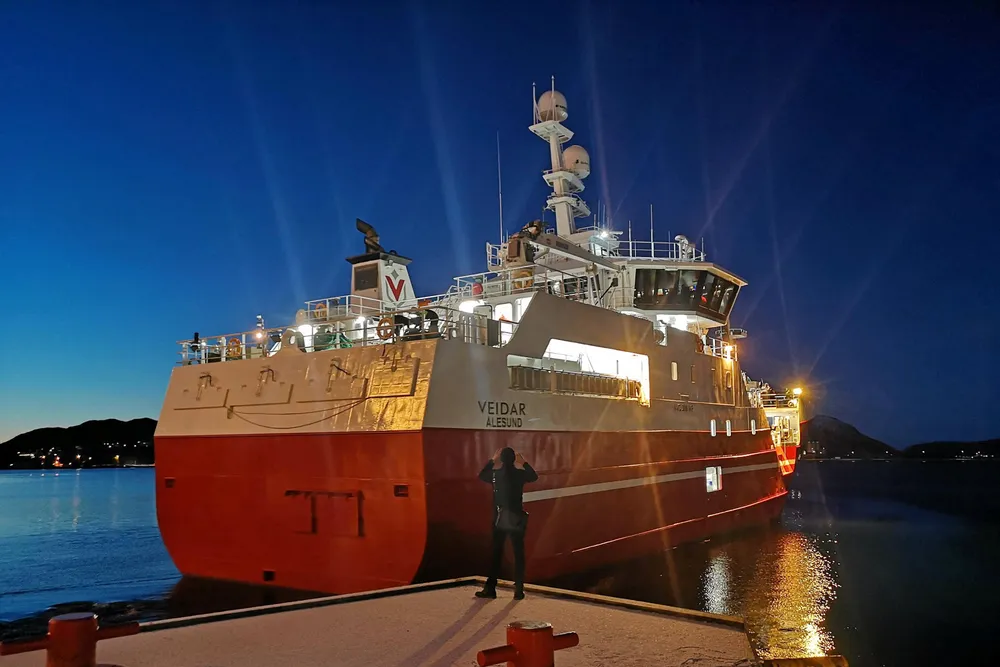 1. januar 2023 kunne «Veidar» forlate Vard i Søvik utenfor Ålesund, og sette kursen nordover. Første stopp er Tromsø, deretter prøvefiske.Foto: Vard