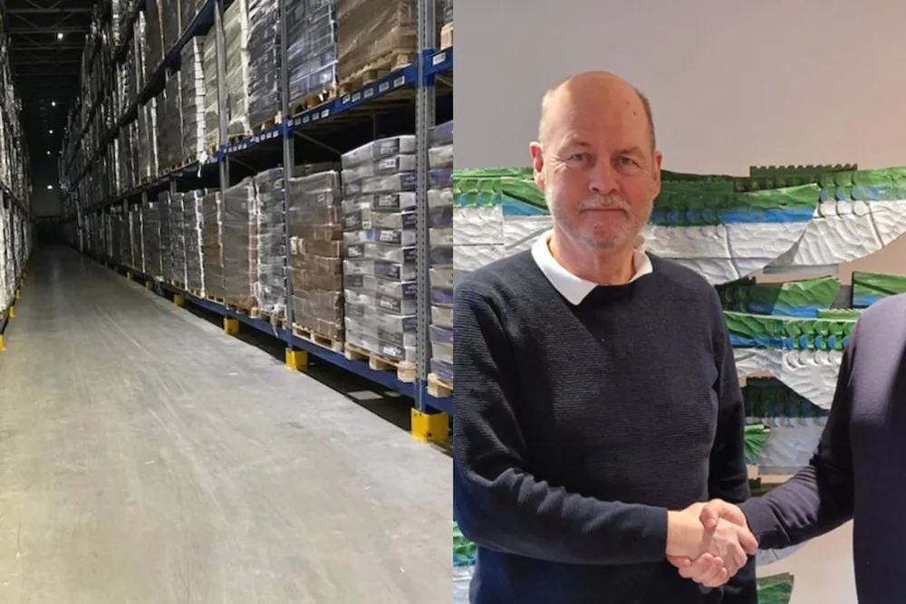 Bildet til venstre viser store mengder fryst fisk på lager, blant annet fra sjømatgiganten Pelagia. Blokaden rammer også både Geir Robin Hoddevik (til venstre) i Global Fish og Darius Beinortas i logistikkfirmaet Uab Vpa Logistics.Foto: Privat