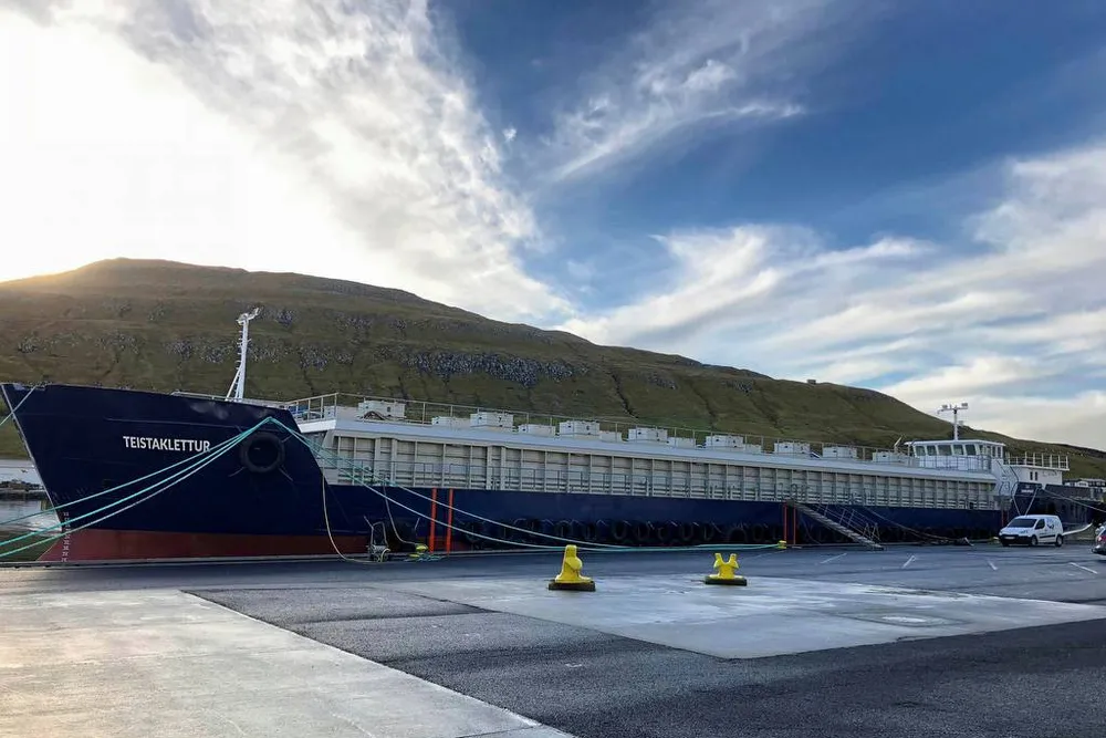Det ombygde bulkskipet blir nå fôranlegg for Bakkafrost.